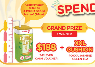 a. Grand Prize: $188 7-Eleven Cash Voucher + XXL Cushion POKKA Jasmine Green Tea (1 winner)